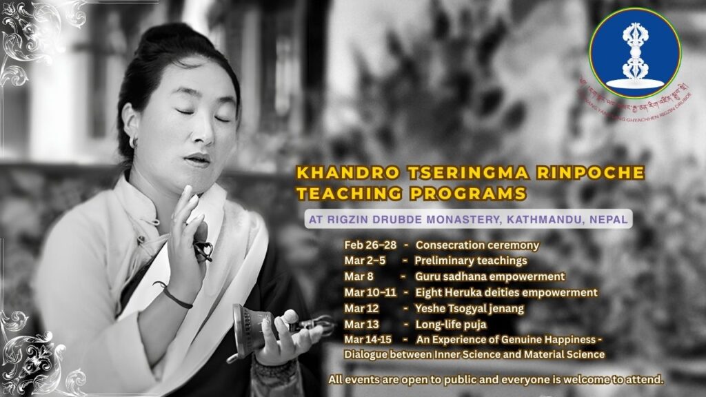 We are pleased to announce that Dagnang Yangsang Gyachchen Rigzin Drubde (“Rigzin Drubde”), situated in Budhanilkantha near the capital city of Kathmandu, Nepal will host a series of sacred Dharma events led by Khandro Tseringma Rinpoche.
