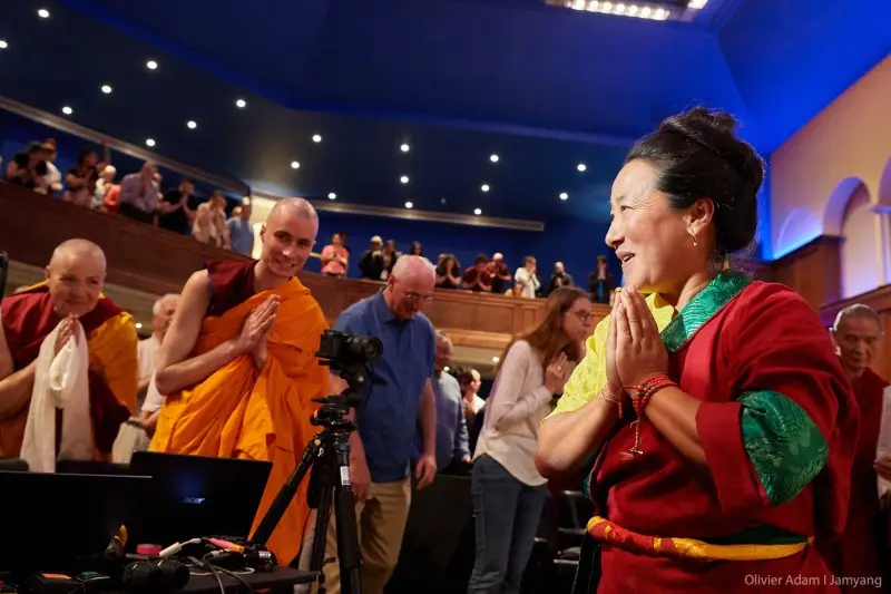 On behalf of Khandro Ling and Shantideva Center, we are honored and delighted to welcome back Rangjung Neljorma Khandro Tseringma Rinpoche (“Khandro Rinpoche”) who embodies all the qualities of a bodhisattva, radiating luminous wisdom infused with affection for everyone everywhere. This is a rare and precious opportunity to be in the presence of a highly accomplished practitioner. May these teachings support your studies and practice to this most beneficial aim: seeing yourself as you really are.