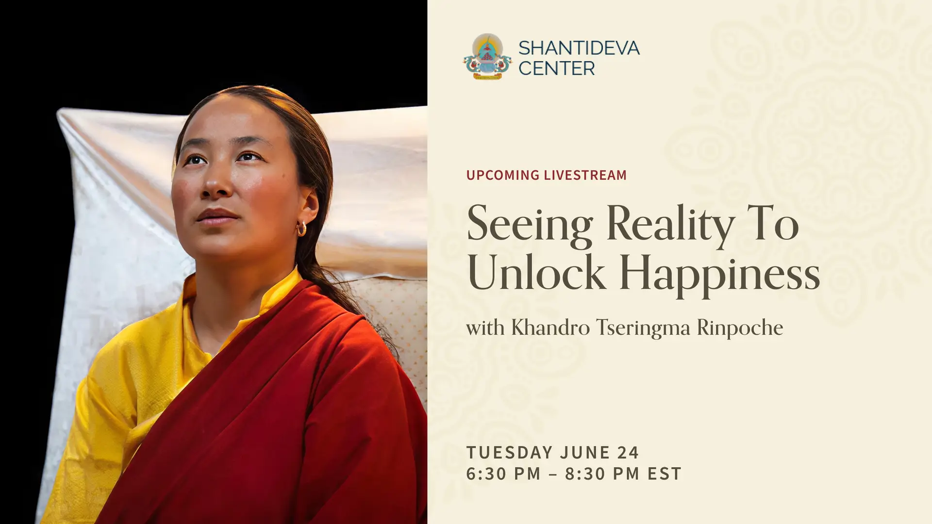 On behalf of Khandro Ling and Shantideva Center, we are honored and delighted to welcome back Rangjung Neljorma Khandro Tseringma Rinpoche (“Khandro Rinpoche”) who embodies all the qualities of a bodhisattva, radiating luminous wisdom infused with affection for everyone everywhere. This is a rare and precious opportunity to be in the presence of a highly accomplished practitioner. May these teachings support your studies and practice to this most beneficial aim: seeing yourself as you really are.